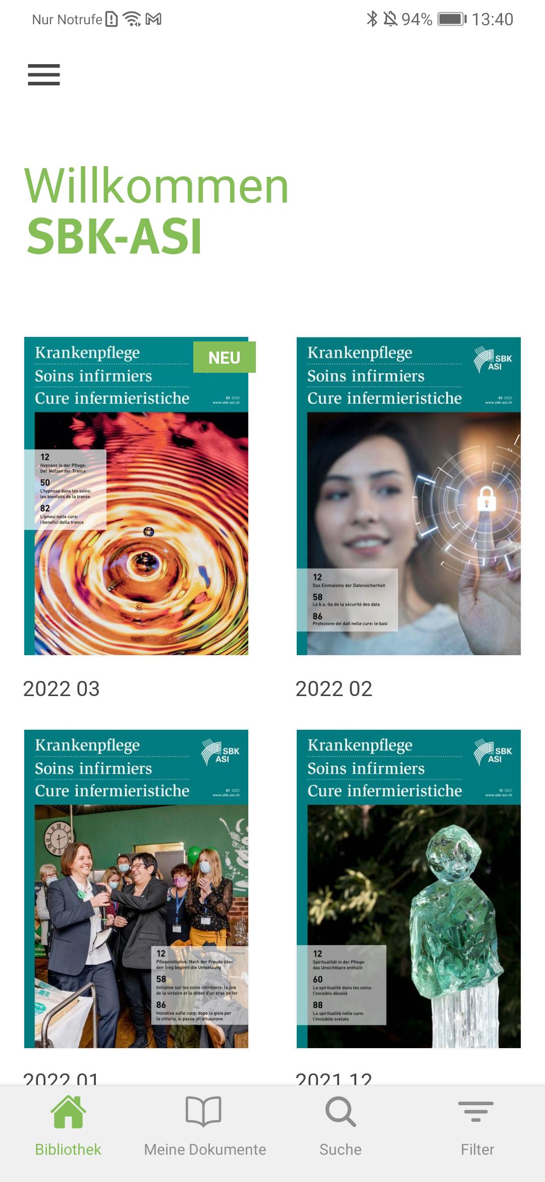 ใช้แอพ SBK-ASI เพื่ออ่านนิตยสารการพยาบาลบนอุปกรณ์มือถือทั้งหมดของคุณ นิตยสารผู้เชี่ยวชาญที่ใหญ่ที่สุดของสวิสสำหรับการดูแลอย่างมืออาชีพนำเสนอบทความผู้เชี่ยวชาญเกี่ยวกับหัวข้อต่าง ๆ เช่นการดูแลแบบเฉียบพลันและระยะยาวการดูแลทางจิตเวชการพยาบาลเด็กนโยบายสุขภาพและอื่น ๆ อีกมากมาย นอกจากนี้คุณยังจะพบข้อมูลล่าสุดจากสมาคมพยาบาลวิชาชีพชาวสวิสซึ่งเป็นตัวแทนของผลประโยชน์ของพยาบาลในสวิตเซอร์แลนด์นักการเมืองและเจ้าหน้าที่และหน่วยงาน